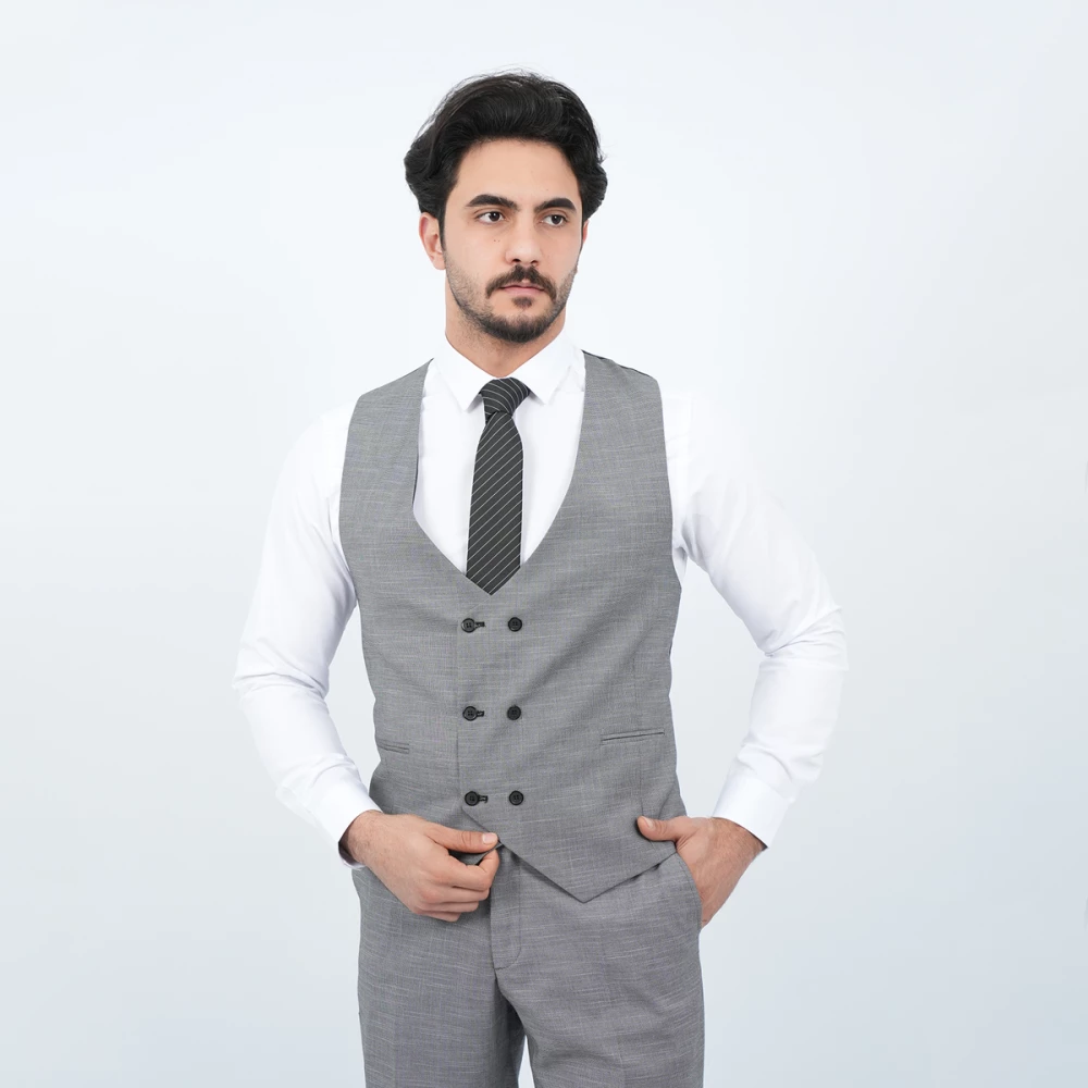 Le gilet assorti ajoute une touche de raffinement supplémentaire, idéal pour vos événements les plus formels. Quant au pantalon, il est conçu avec une coupe droite pour garantir confort et allure tout au long de la journée.