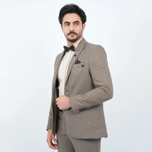 Ce costume 2 pièces est parfait pour vos occasions spéciales. La veste a une coupe ajustée, une fermeture à deux boutons et deux poches à rabat à l’avant. Elle possède aussi une poche sur la poitrine pour un mouchoir ou une pochette.