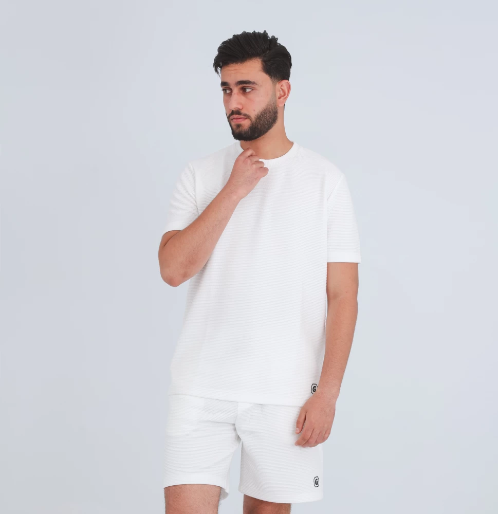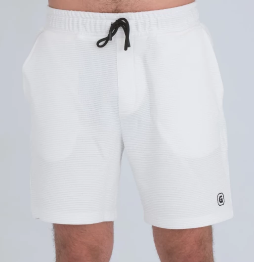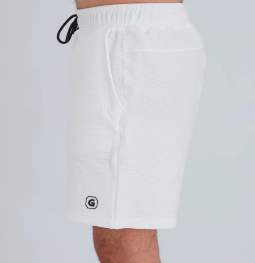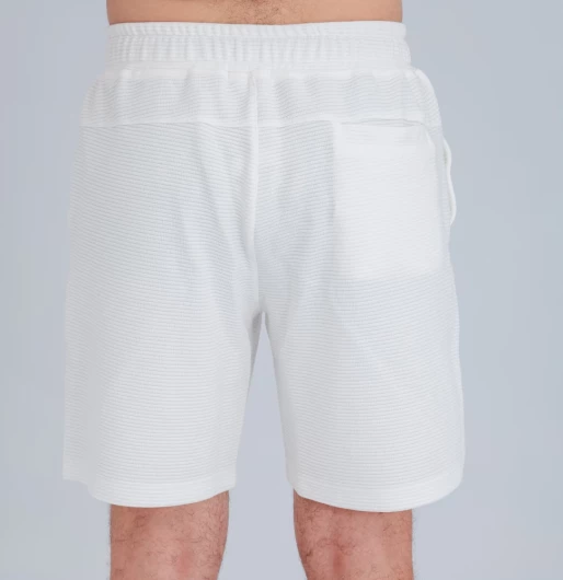 Short blanc en maille texturée, idéal pour un look décontracté et tendance. Taille élastique, coupe confortable et logo discret pour une allure moderne.Léger & respirant – Coupe relax –Parfait pour l été